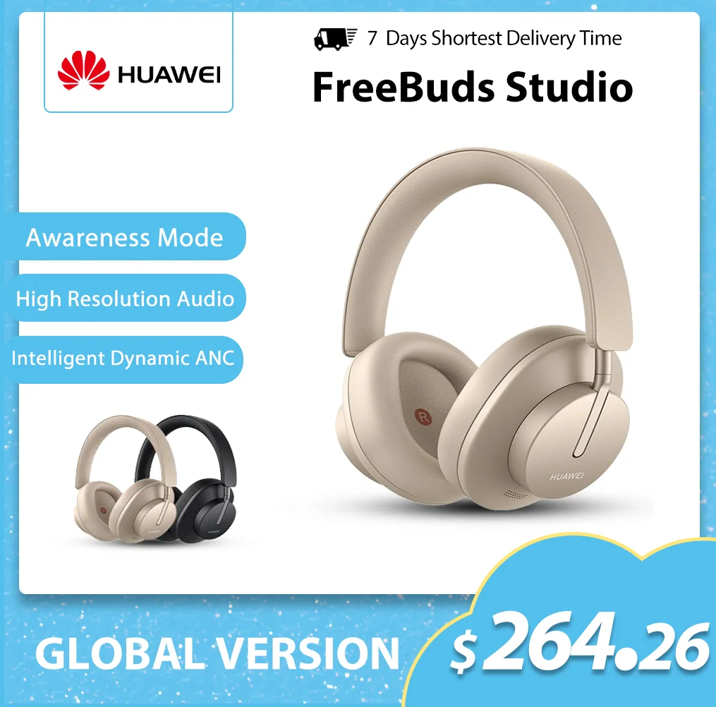 Top Huawei Freebuds Studio Global Version Bluetooth Audiophile Headphones Wireless TWS HI-FI ANC Type C Gaming Headset with and You will save 51% or US $267.26 today